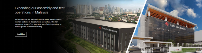 Following the news of the price cut, Texas Instruments announced a new expansion plan: Investment of RM14.6 billion (about RMB 22.6 billion) built two new assembly and test factories in Malaysia.Expansion of Malaysia Business